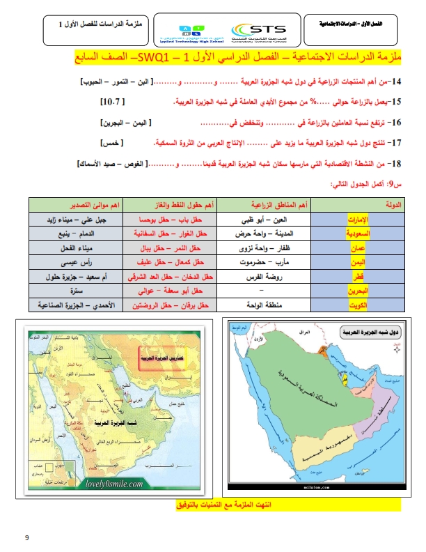 مراجعة الدراسات الاجتماعية للصف السابع الفصل الدراسي الاول2017 2018