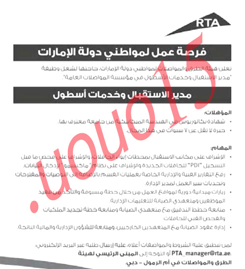 متابعات الوظائف وظائف هيئة الطرق والمواصلات العامة في دبي لعدة تخصصات وظائف سعوديه شاغره Road Transport Rta Author