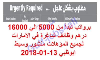 برواتب تبدأ من 5000 الي 16000 درهم وظائف شاغرة في الامارات لجميع المؤهلات منشور وسيط ابوظبي