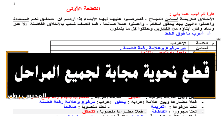 قطع نحوية مجابة كاملة مع أسئلة استخرج من القطعة وصوب الخطأ Doc